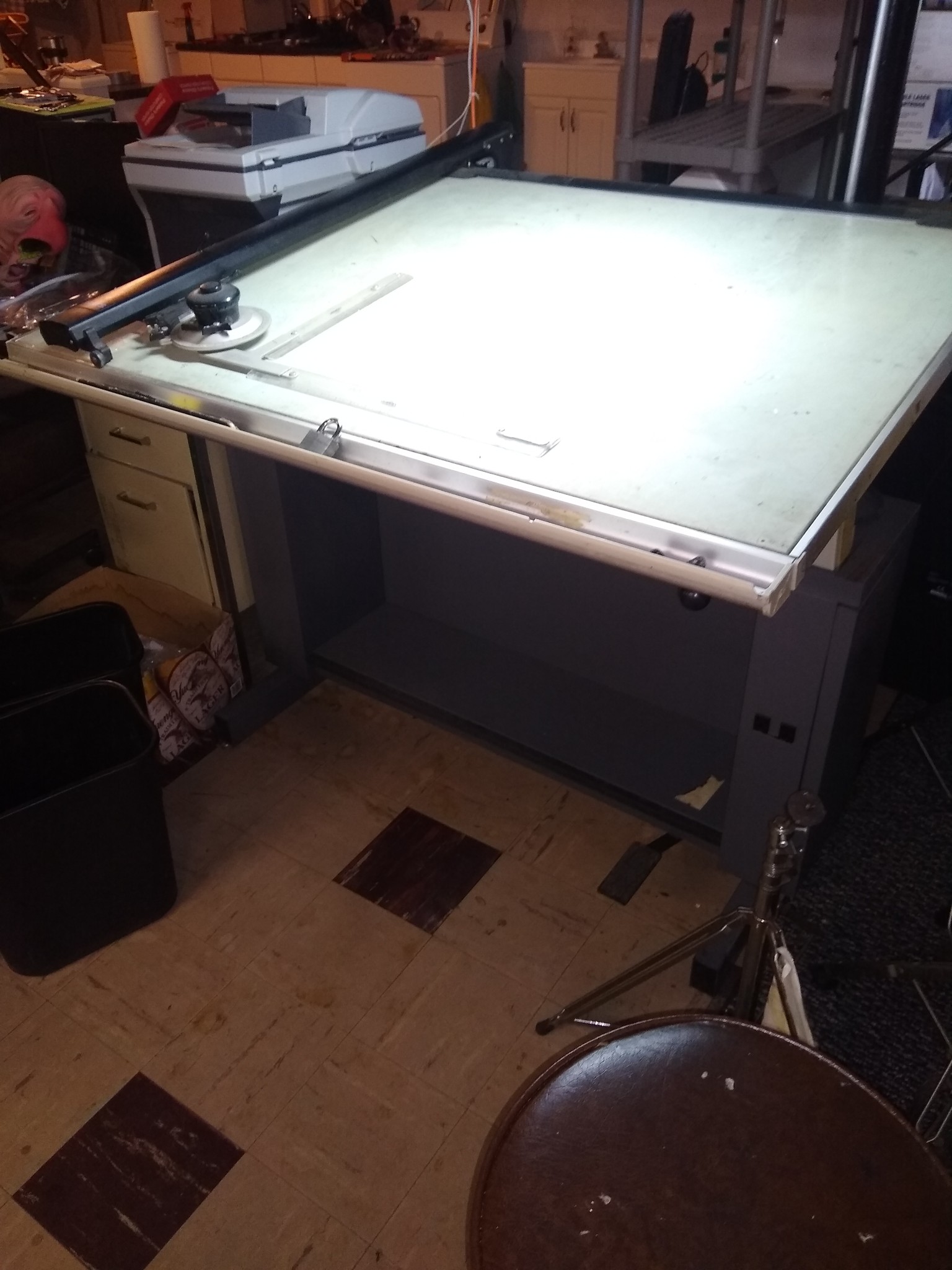 is a 1" x 14" pull-out board, a 3 1/2" drawer, a hangiing file drawer